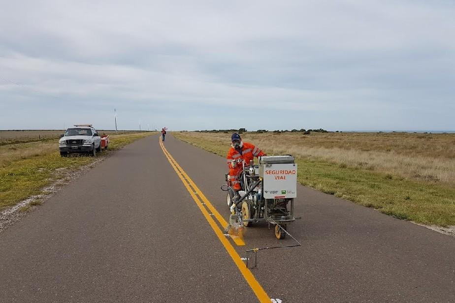 Con el objetivo de garantizar un aumento en las condiciones de seguridad vial en el Camino de la Costa, Vialidad Rionegrina avanza la señalización horizontal de la Ruta Provincial Nº 1, entre el balneario El Cóndor y La Lobería.